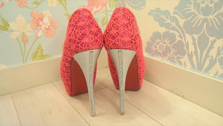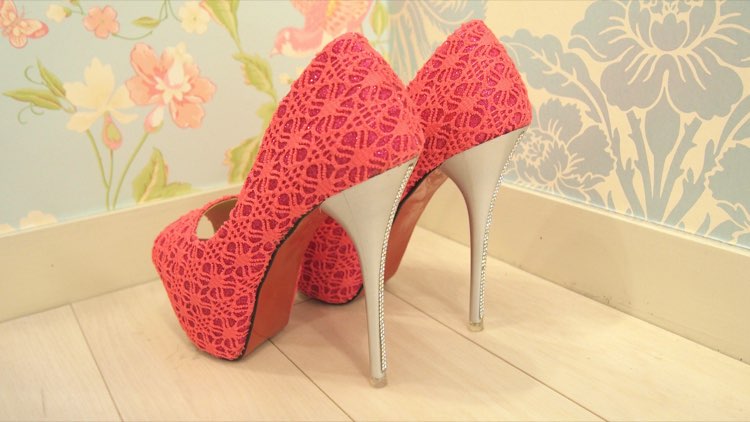 ビビッドピンクグリッターレースプラットフォームパンプス 37 レンタルドレスのドレリッチ